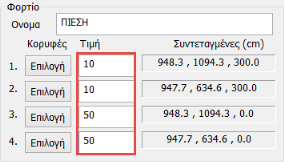 Τώρα μπορούμε να ορίσουμε τους συντελεστές καθώς και αν ο συνδυασμός θα είναι Αστοχίας ή Λειτουργικότητας.